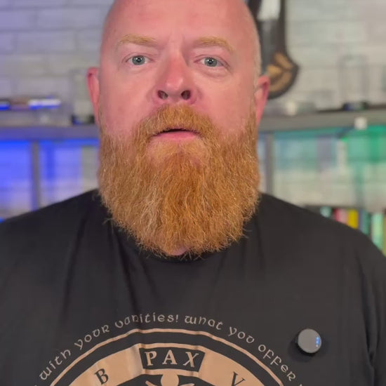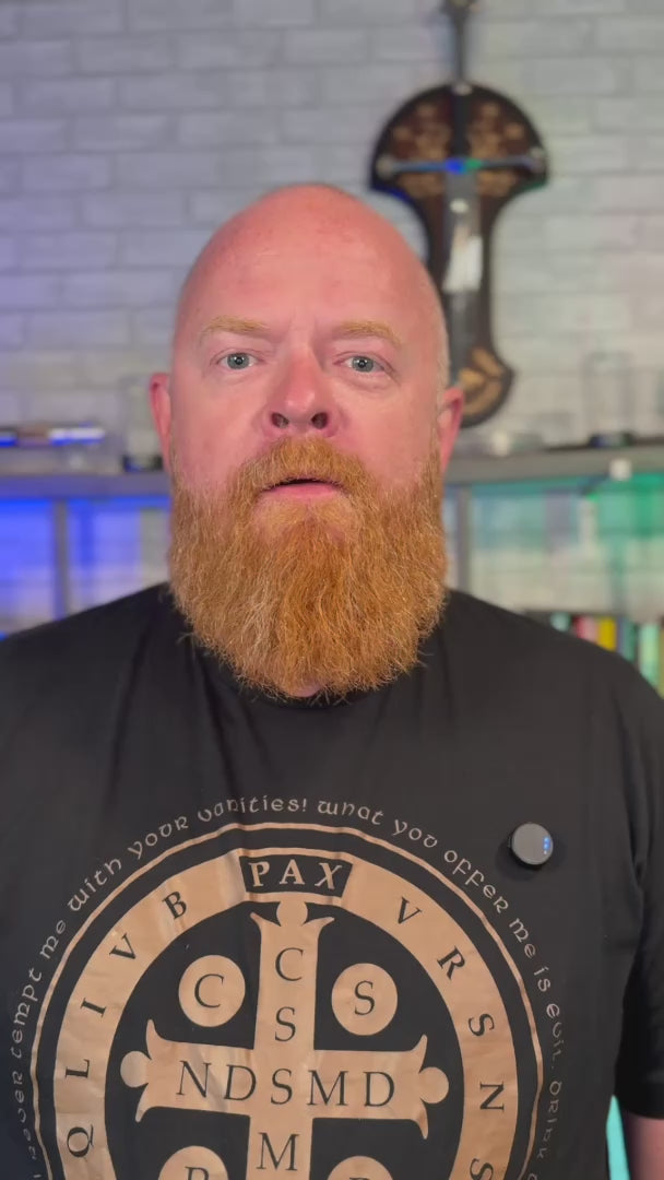 This beautiful gemstone rosary bracelet features dark wood as the paters, blue dyed agate as the aves and features our very own Crux Invicta Crucifix.